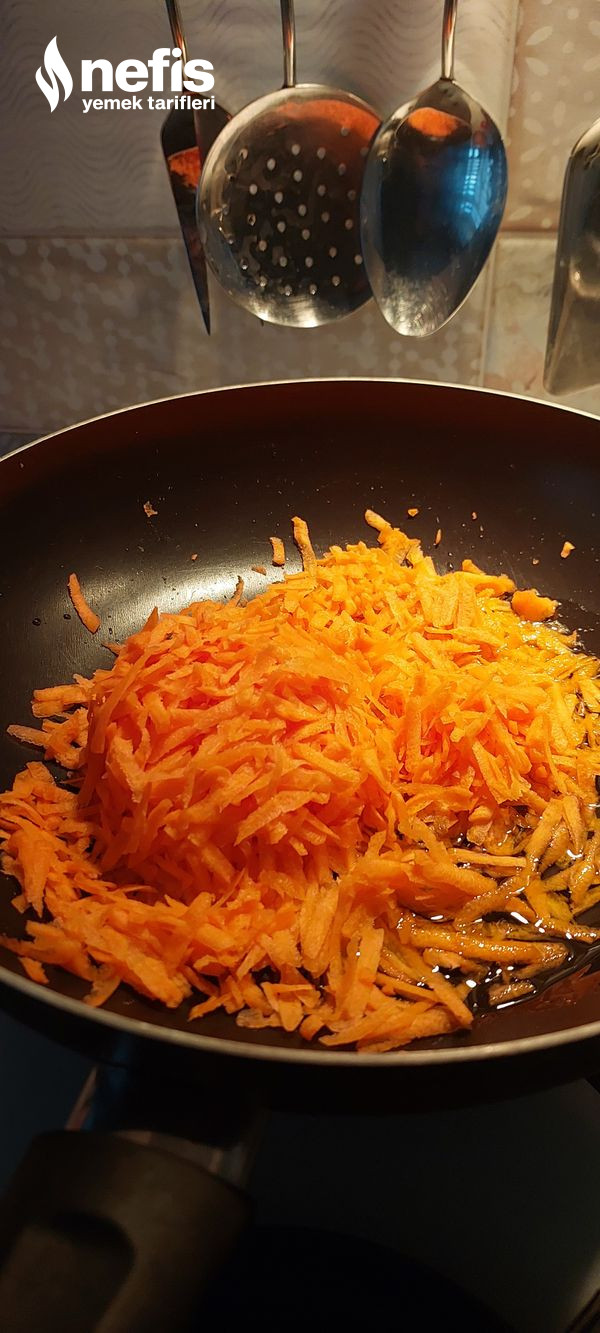 1. Hazırlanışı rendelenmiş havuçları az ölçüde zeytinyağında yumuşayana kadar kavurun ve soğumaya bırakın.