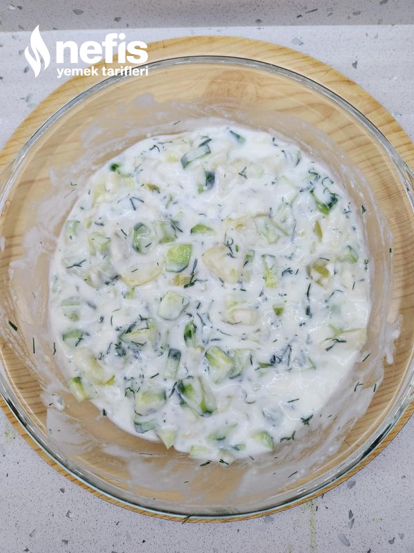 4. Uygun bir kasede yoğurt ile bütün materyaller karıştırılır. Tuz ek edilir.
