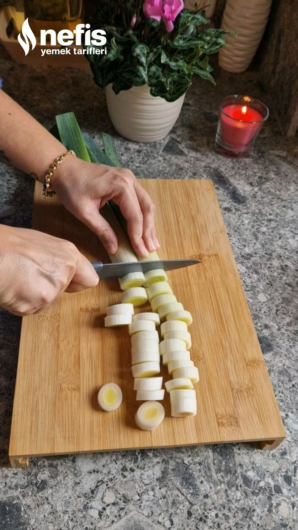 3. Pırasayı ekleyip kavurmaya devam edelim.