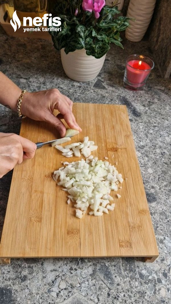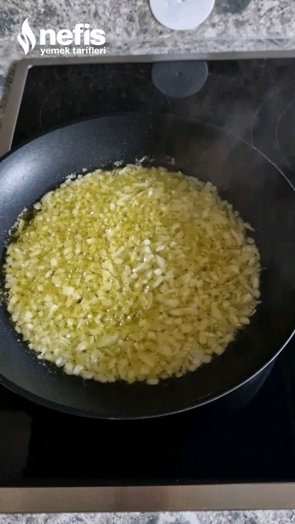 1. Yağı tavaya alalım ve üzerine soğanı ve sarımsağı ekleyip hafif pembeleşinceye kadar kavuralım.