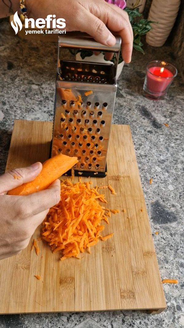 4. Tuzunu ve kara biberini ekleyip biraz daha kavurduktan sonra rendelediğimiz havuçları ekleyip karıştıralım ve kapağını kapatalım.