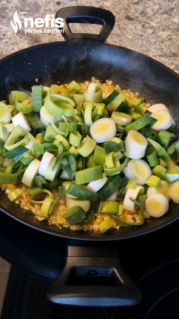 5. Ara orta karıştıp pırasaların diriliği gidene kadar pişirelim. (yaklaşık 10dk. Kadar).