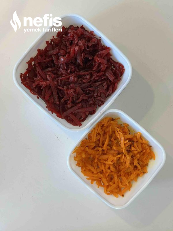 9. Yumuşayan pancarı alalım, dilerseniz küçük küp küp doğrayabilirsiniz. Ancak ben rendeledim. :).