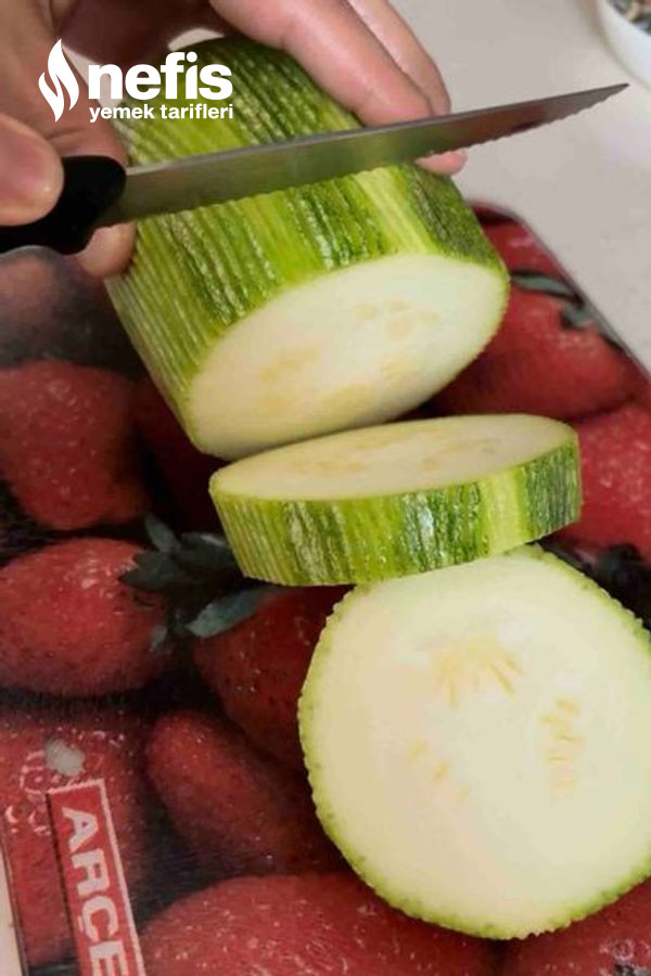 - 🧑🍳Kabakları tırtıklı aparat ile biçim verelim güzelce yıkayalım ve dilimleyelim,tuzlayalım yağda kızartalım.