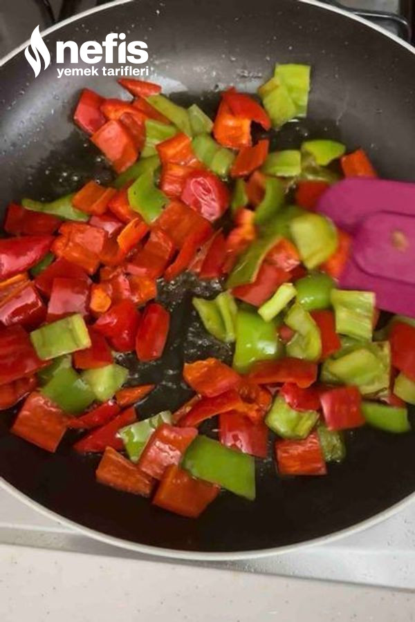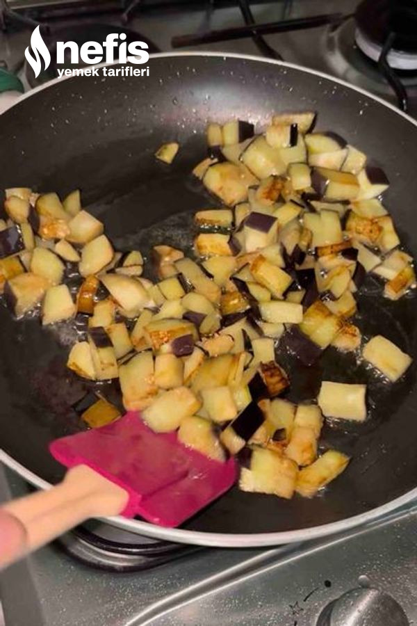 - Patlıcan,biberleri küp halinde doğrayalım birebir halde yağda kızartalım ve tuzlayalım.