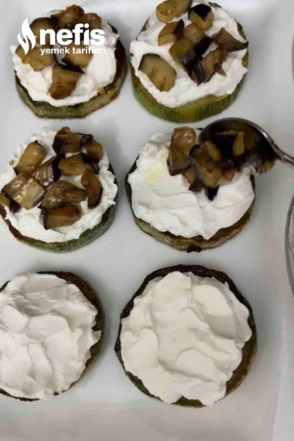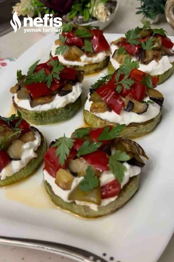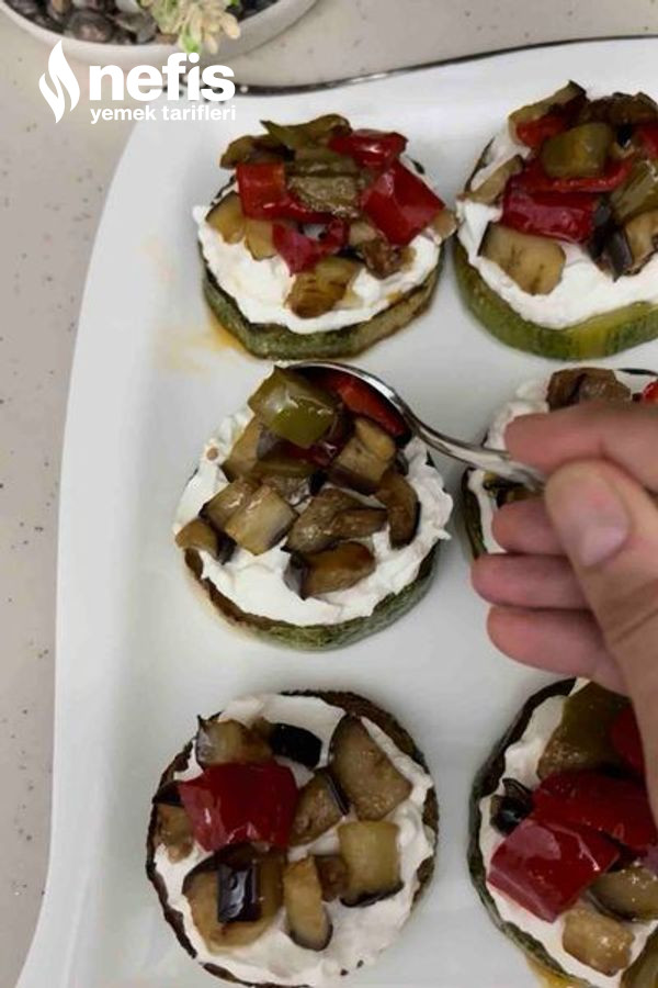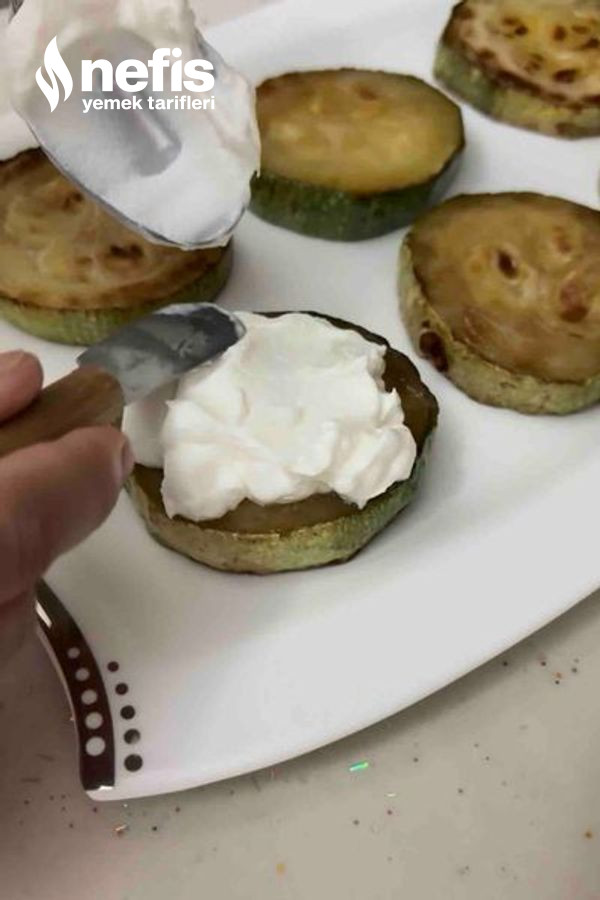 - Kabakları servis tabağına alalım üzerine yoğurdu sürelim kızarttığımız zerzevatları üzerine yerleştirelim en son maydanoz ile süsleyelim. Afiyet olsun.