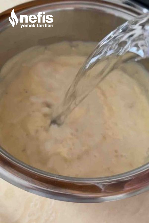 - Üzerine dört bardak soğuk su ek edip tekrar güzelce karıştıralım.