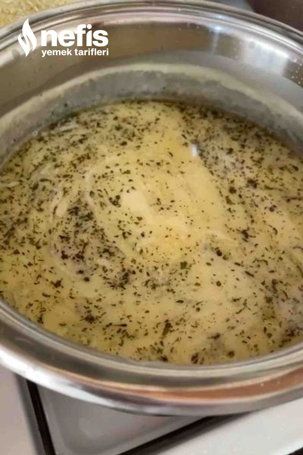 - Sos tavasına yağları ekleyip düzgünce ısıtalım üzerine bir tatlı kaşığı kuru nane ek edip karıştıralım ve çorbanın üzerine ek edelim.
