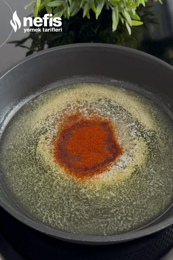 - Kırmızı toz biber ekleyip yavaşça kavuralım.
