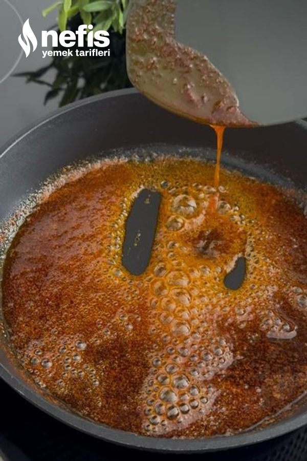 - Hazırladığımız sosu yoğurdun üzerine gezdirelim.