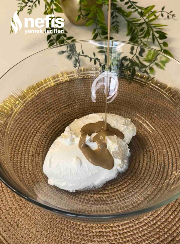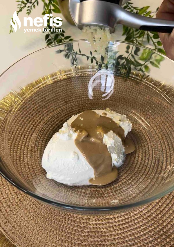 - Yoğurtlu tahinli karışım: geniş bir karıştırma kabına süzme yoğurt, tahin, ezilmiş sarımsak ve tuzu ekleyin.
