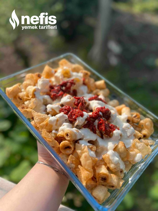 10. Tabağımıza eklediğimiz kızarmış yufkaların üzerine yoğurt ve onun üzerine ise salçamızı ekleyelim ve hazır, şimdiden elinize sıhhat afiyet olsun ☺️🌸