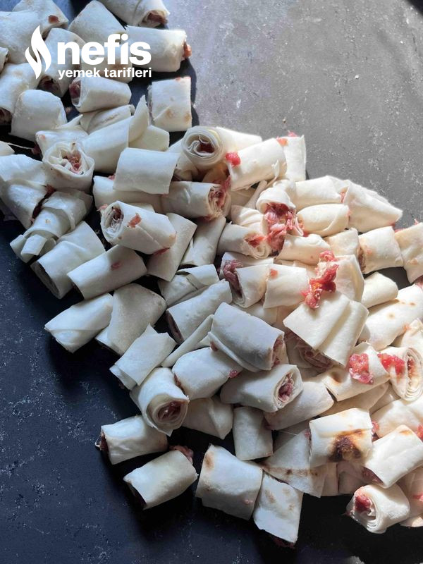 4. Sonra yufkalarımızı sıkı bir biçimde yuvarlayalım ve tek tek yapıp kenara ayıralım.