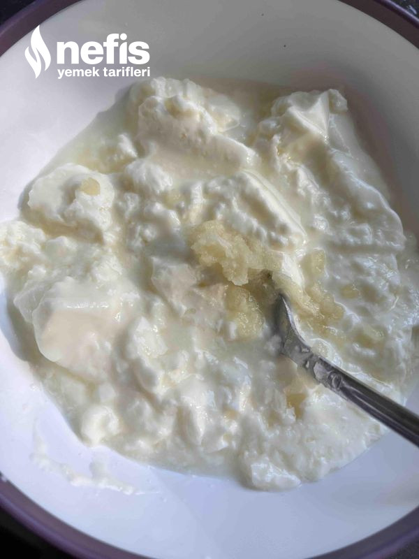 8. Yoğurdumuzun içine sarımsağımızı rendeleyip, homojen bir kıvam alana kadar karıştıralım.