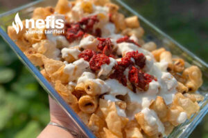 10. Tabağımıza eklediğimiz kızarmış yufkaların üzerine yoğurt ve onun üzerine ise salçamızı ekleyelim ve hazır, şimdiden elinize sıhhat afiyet olsun ☺️🌸