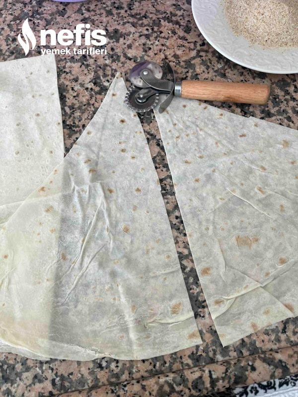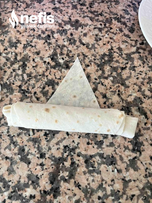 2. Üçgen biçimde kestiğimiz yufkaları fotoğraftaki üzere sarıyoruz.