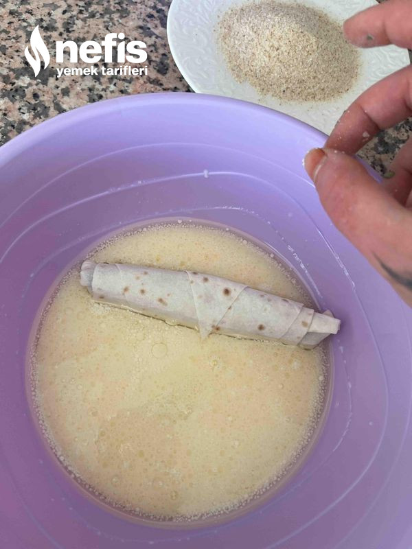 3. Hazırladığımız sosa düzgünce buluyoruz ön ve gerili daha sonra galeta ununa batırıp, tepsiye alıyoruz.