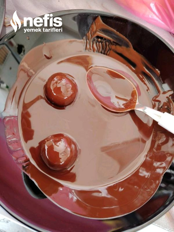 8. 15 dk bittikten sonra çıkarıp çikolataya buluyoruz ve tekrar tepsiye diziyoruz.