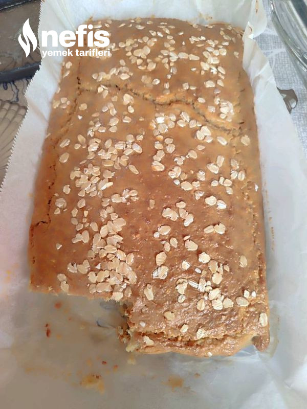 3. En son yağlı kağıt serili ince dikdörtgen borcama dökelim, üzerine yulaf serpiştirip evvelce ısıtılmış 180°c fırına alt üst koyalım.