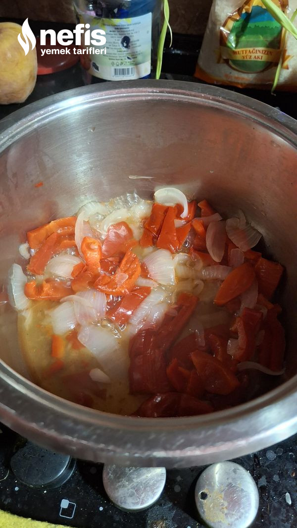- Daha sonra kapya biberi ekleyip kavuruyoruz. Sonrasında salçaları ekleyerek biraz daha kavuruyoruz.
