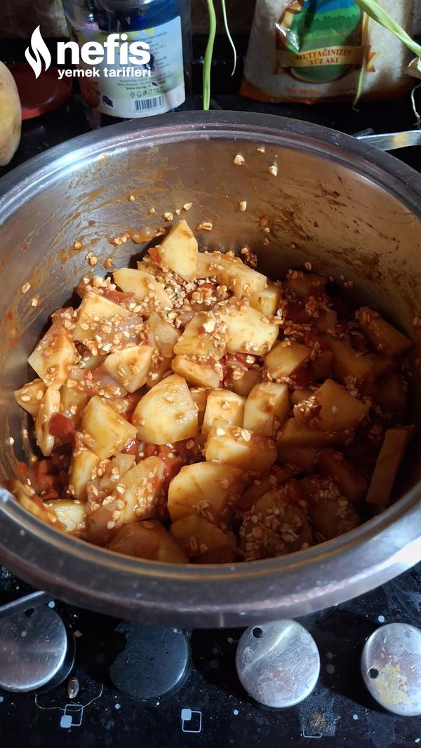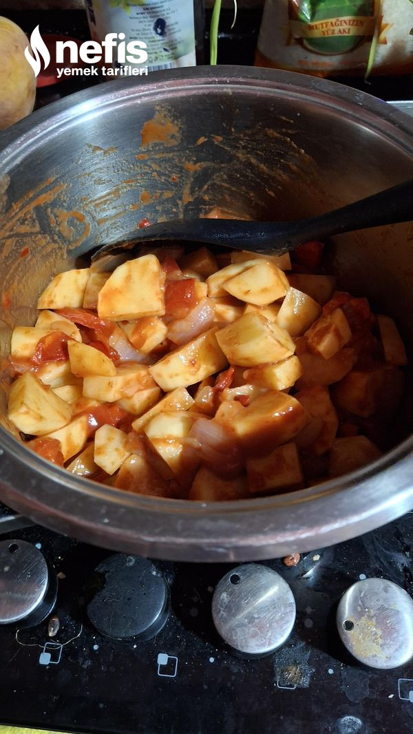 - Yemeklik doğradığımız patatesleri ek edilerek soteliyoruz.