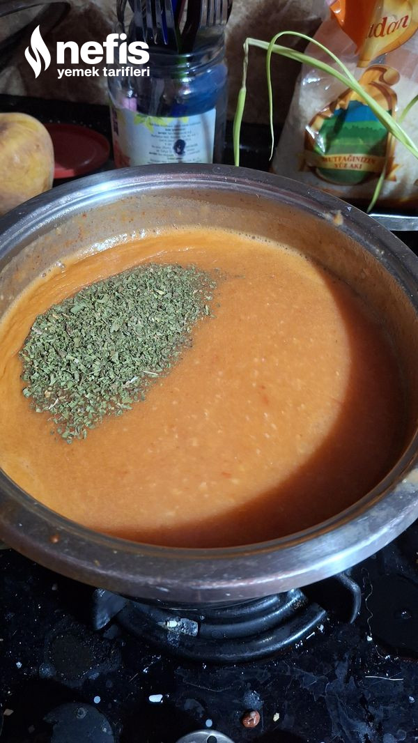 - Çorbamıza kuru nane ve zeytinyağı da koyarak karıştırıyoruz. Birkaç dakika demliyoruz.