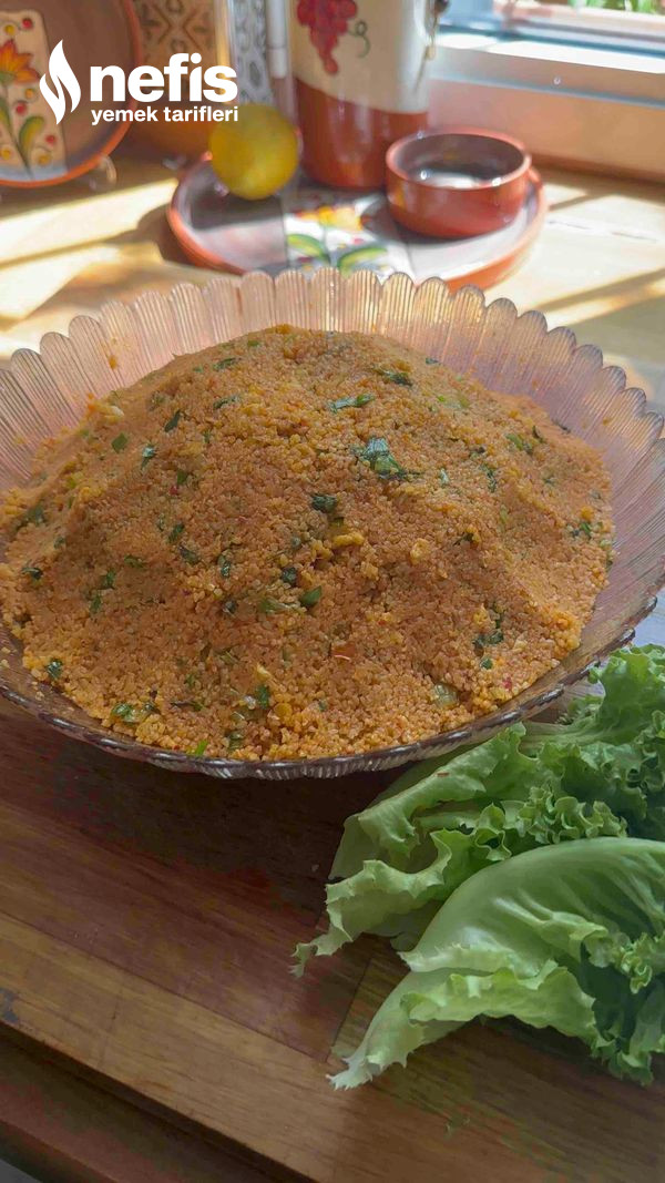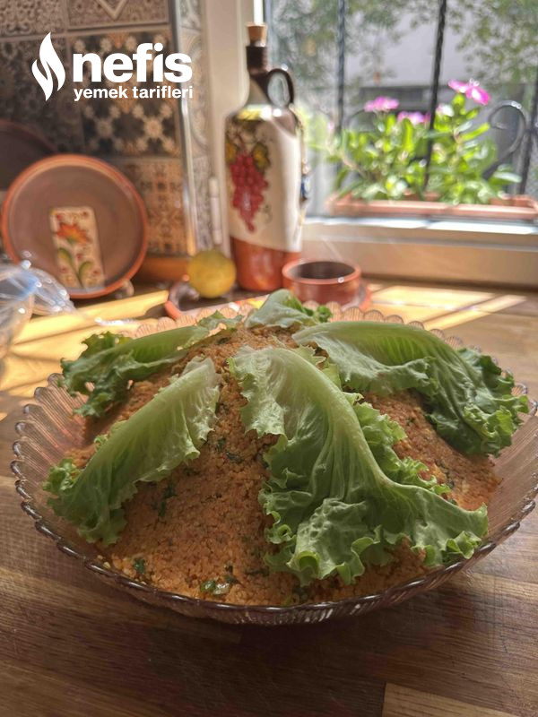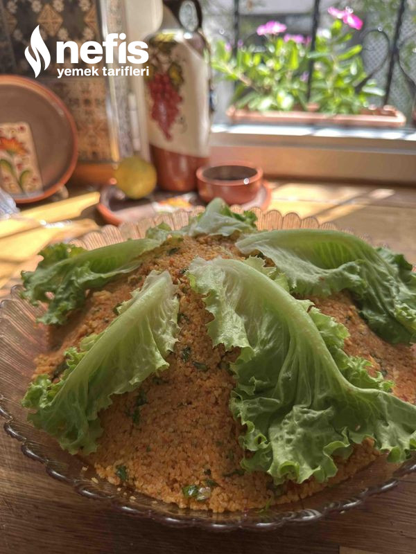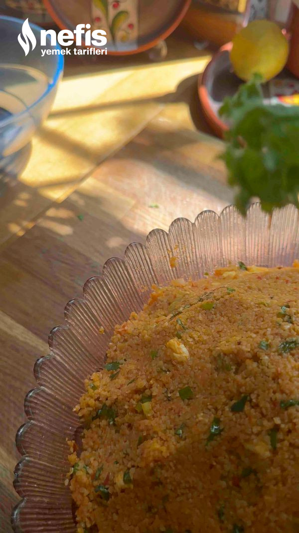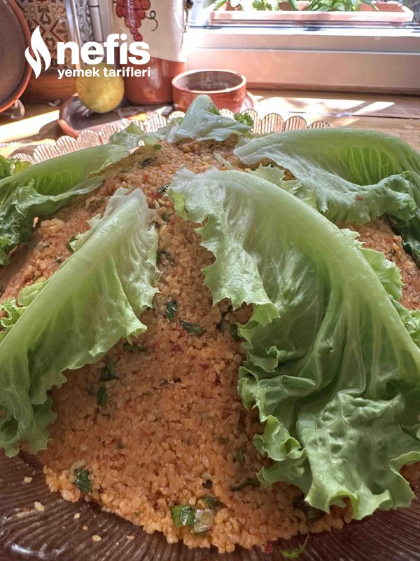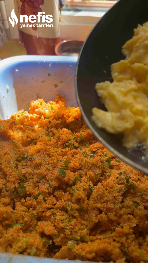 - Bulgur şişince üzerine salçasını, baharatları ve yeşillikleri ekleyip düzgünce harmanlayın.