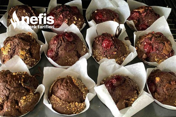 - Kalıplara döktükten sonra donmuş vişne ve çikolata kesimleri ekledim.