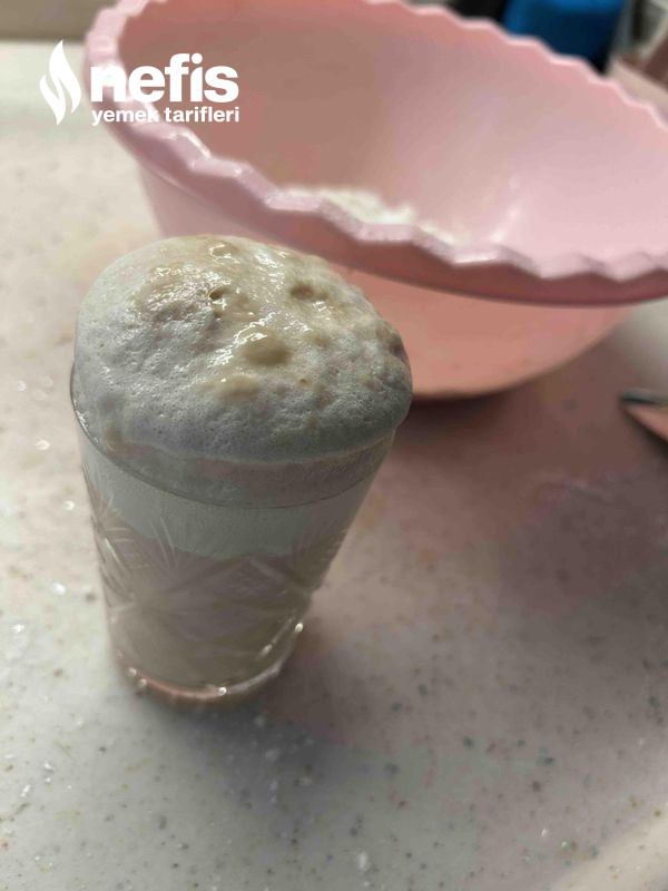 - Öncelikle ılık suyun içine maya ve şeker atılıp 5 dakika beklemeye bırakılır.