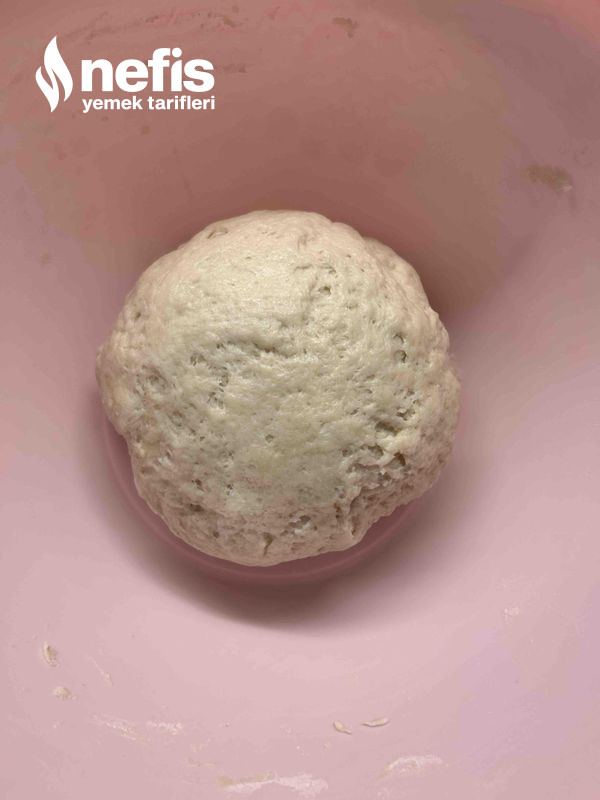 - Ele yapışmayan bir hamur olana kadar yoğurulur ve ağzı streçlenerek en az 1 saat beklenir.
