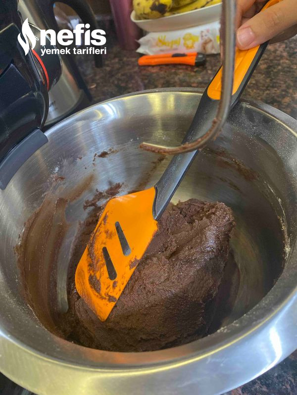 - 3 su bardağı un ve yarım su bardağı kakao ekleyin, yoğurup şekillendirin.