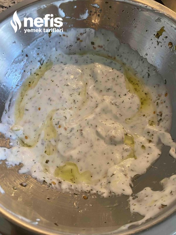 - Soğuyan zeytinyağı, susam ve sarımsak karışımını yoğurda ekleyip güzelce karıştırın ve servis tabağına serin.