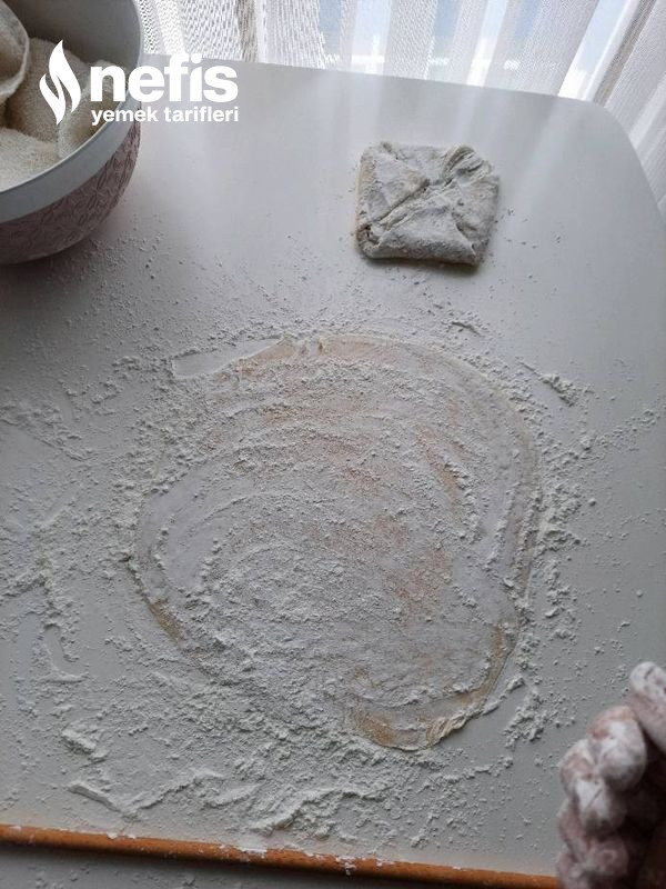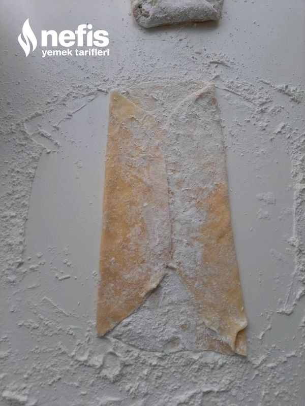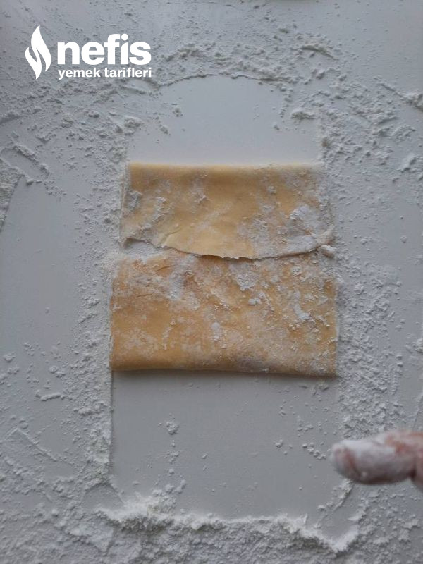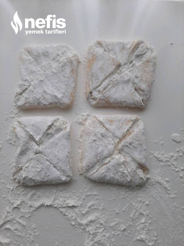 8. Fotoğraflarda göreceğiniz üzere hamuru bohça formunda son defa katlayın.
