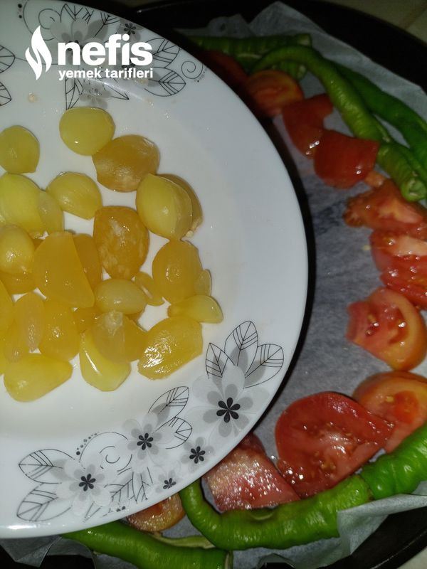 - Sarımsaklarımızı soyup tepsimizin ortasına yerleştirelim.