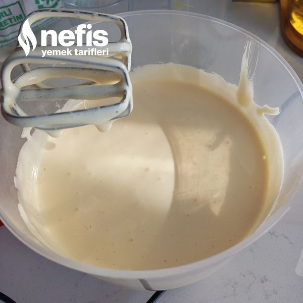 - Sıvı yağ ve süt ek edip tekrar çırpalım.