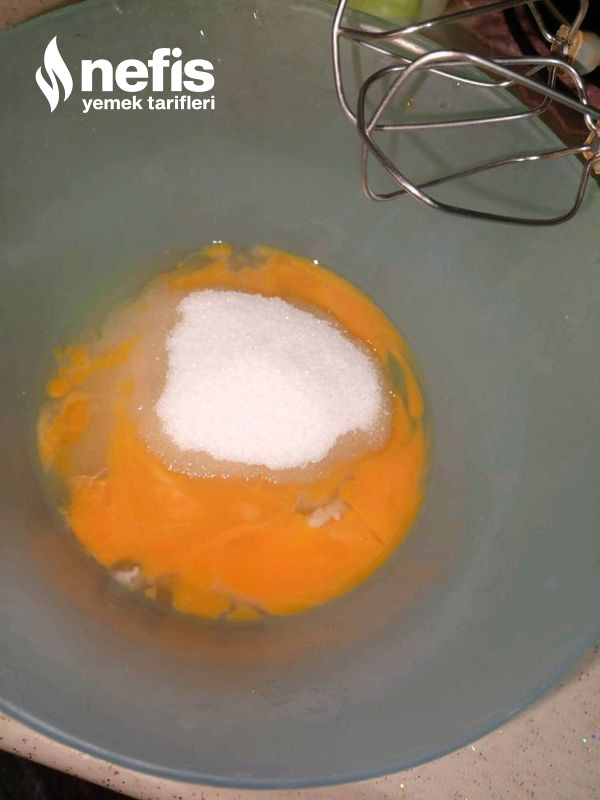 2. Kalıbımız dolapta beklerken, bu sırada yumurta ve şekeri mikser ile güzelce çırpalım.