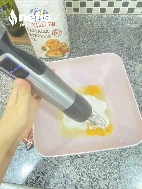 1. İlk evvel 3 yumurtamızı kaba alalım üzerine 1 su bardağı şeker ekleyip 5 dk karıştıralım.