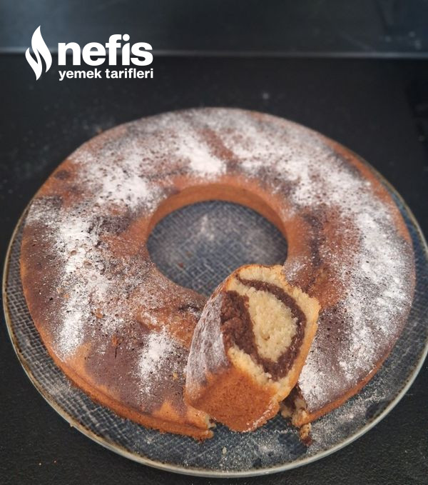 - 2 yemek kaşığı beyaz hamur, üzerine 2 yemek kaşığı kakaolu hamur, yeniden beyaz, yeniden kakaolu… bu biçimde hamurlar kendi kendine yayılıp zebra deseni oluşturacak.