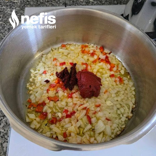 4. Salçayı ek edip kokusu çıkana kadar bir kaç dakika kavurun.