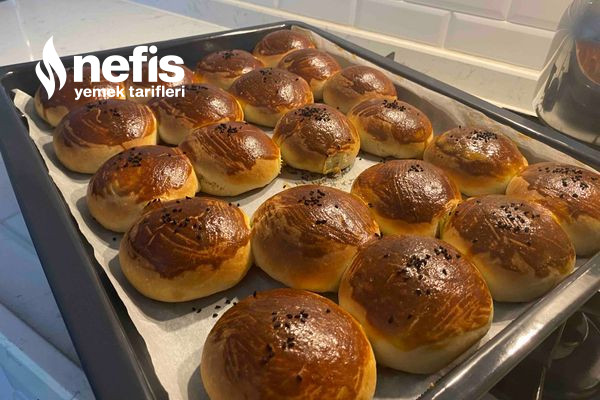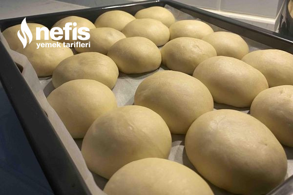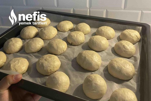 - 1,5 saat mayalanmış hamurumumuzu 20 eşit modüle bölüp iç harçlarını koyup tepsiye dizelim.