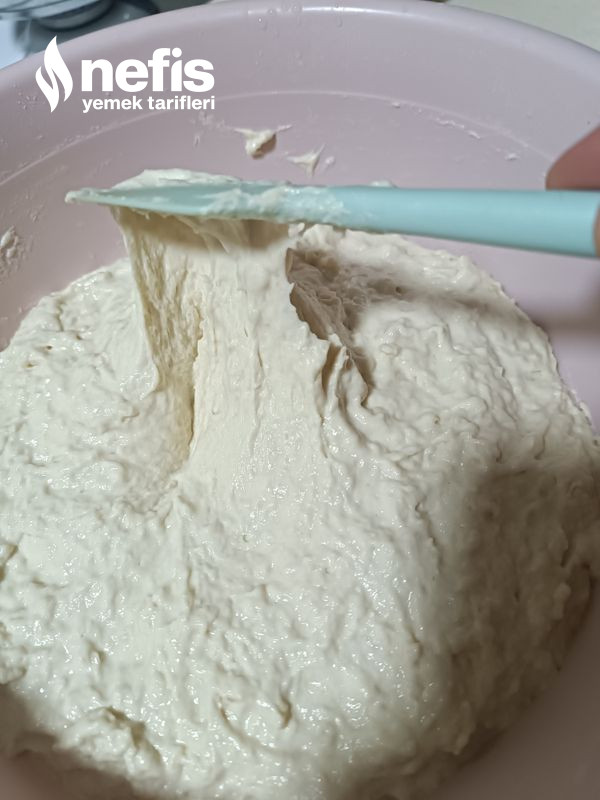 3. Yarım saatin sonunda elimizi yağlayalım ve hamura katlama süreci yapalım. Yani kabaran hamurun yanlarından elimizi en alta götürüp hamuru alabildiğimiz kadar üst çekip geri yerine bırakalım.