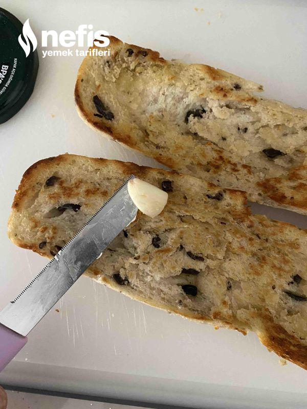 - İyice kızaran yağı çeken ekmeklerimizin çabucak soğumadan üzerinde sarımsağı kesip gezdirelim.
