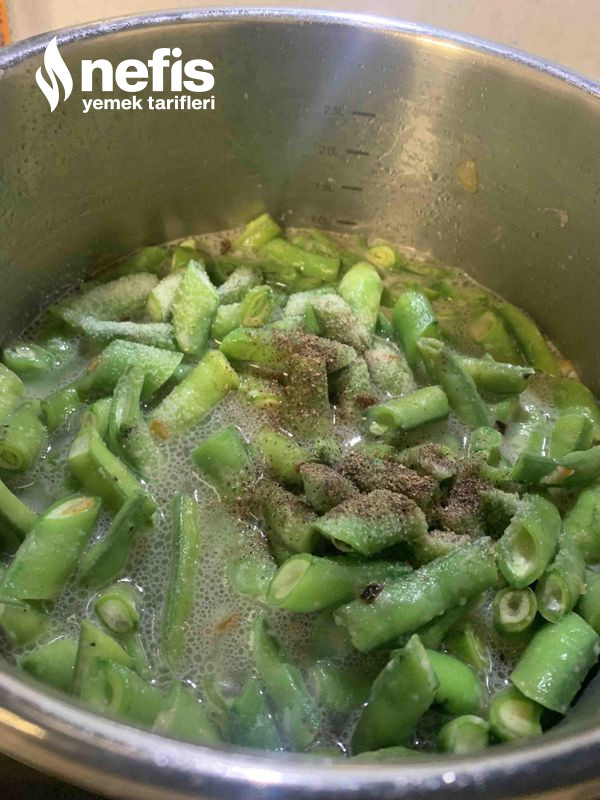 2. Temizlediğimiz baklaları doğrayıp bu suyun içine atıyoruz, böylelikle kararmalarını önlüyoruz.