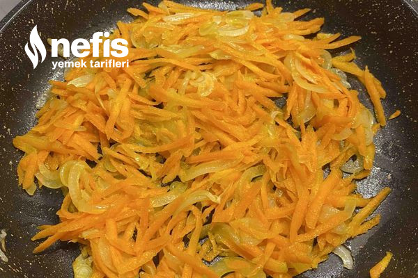 - Havucu rendeleyip yumuşayan soğana ekleyip kavurmaya devam ediyoruz.
