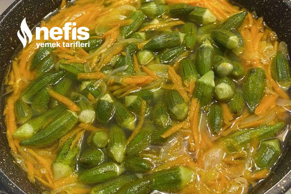 - Soğan ve havuç kavrulunca ayıkladığımız bamyayı ekleyip 3-4 dk ortada karıştırarak kavurmaya devam ediyoruz.