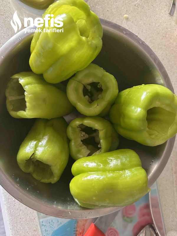 1. Dolmalık biberleri temizleyip güzelce yıkayın. Altlarını bıçakla delin.