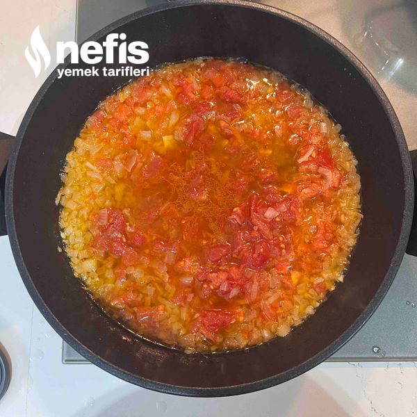 2. Rengi pembeleşmeden suyunu bırakır bırakmaz üzerine doğradığımız domatesleri ekliyoruz.