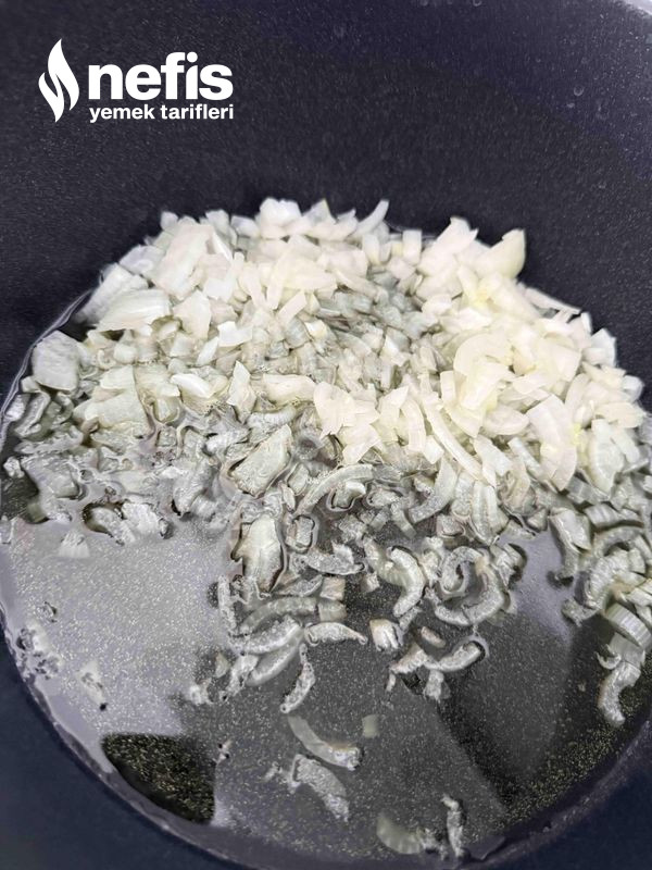 - Soğanı yemeklik küçük küçük doğrayıp zeytinyağında kavurun.
