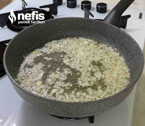 - Tencereye zeytinyağını alalım, küp doğranmış soğanı ek edip kavurmaya başlayalım.