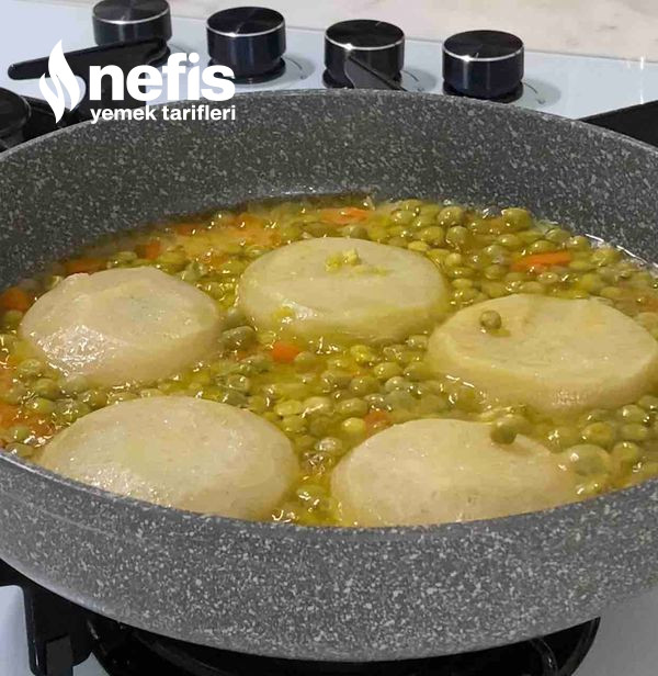 - Ara orta çatalla denetim edelim ve yumuşamaya yakın bezelyemizi de ek edip 5-10 dakika daha pişirip ocaktan alalım, soğumaya bırakalım.
